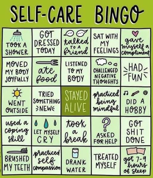 Now this is where we start to extend things a little. Self-Care bingo is also a great game to play with others. I had a go with friends a while back which brought some humour to it but also made it ok that we weren’t looking after ourselves and needed support.